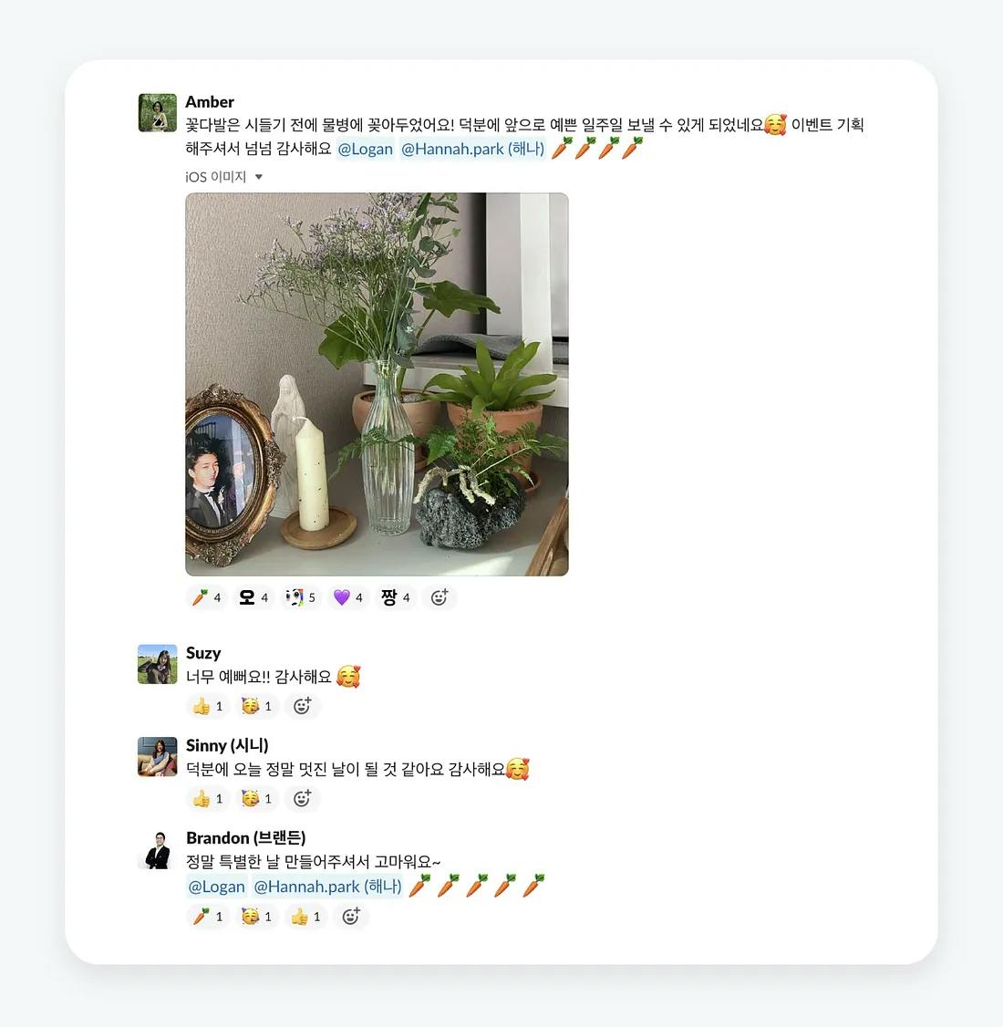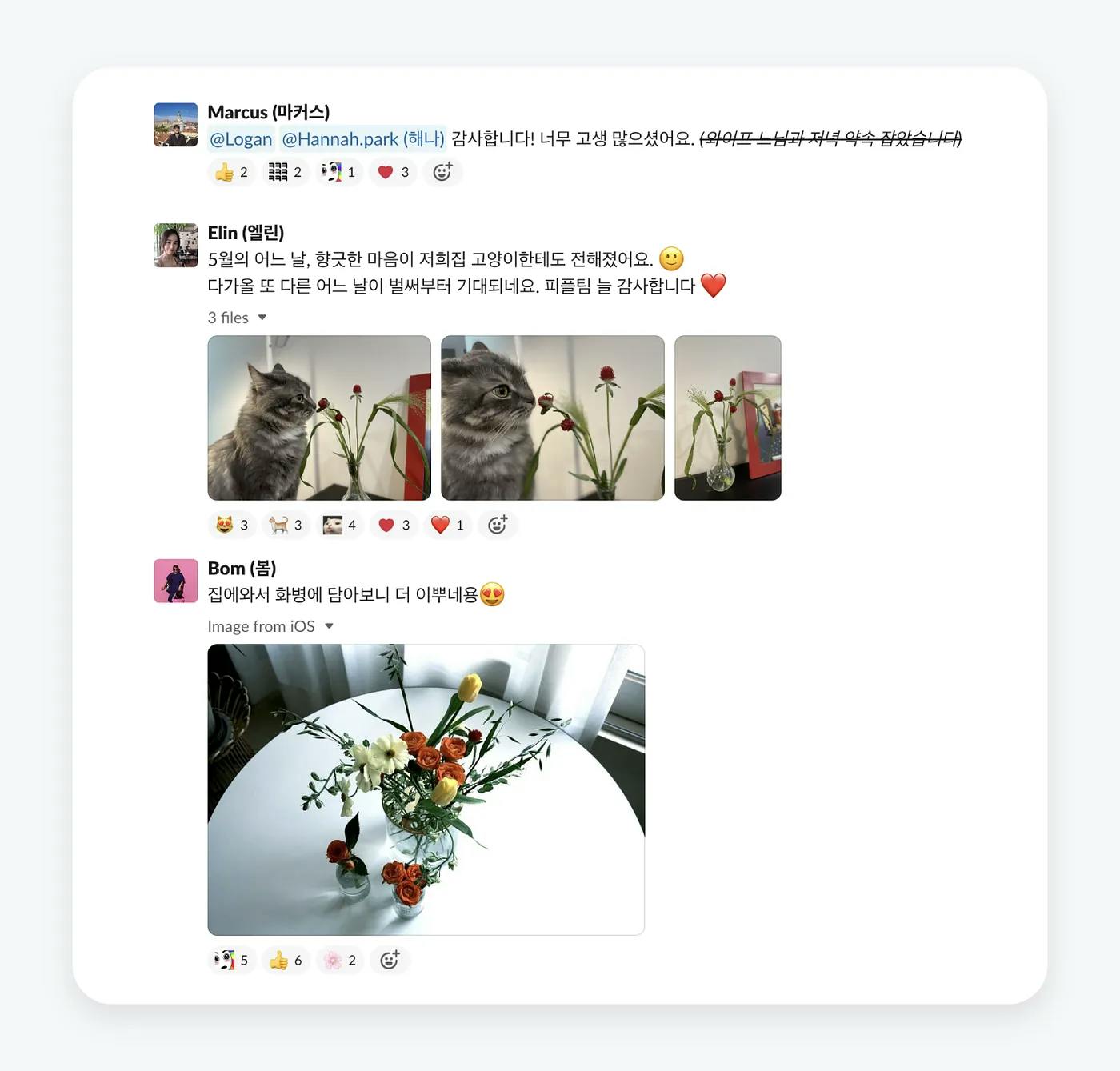 꽃 덕분에 평범했던 하루가 특별해졌던 5월의 어느 날, 꽃다발을 받거나 선물하는 경험을 함께 한 팀원들의 후기를 살펴보면요!