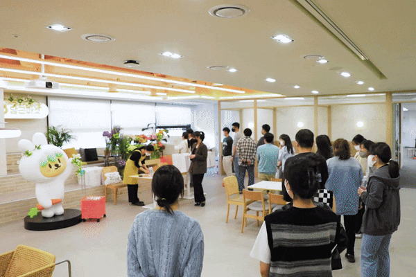 첫날은 2시간 동안 진행됐는데요, 예상했던 것보다 훨씬 많은 팀원들이 함께해주어서 다음 날은 시간도 꽃도 더 늘려서 진행했고 이틀 동안 총 200여 명의 동료들이 꽃을 받고 기뻐했어요. ‘어느 날’ 이벤트 덕분에, 라운지에는 오랜만에 사람들이 삼삼오오 모여 이야기도 나누고 꽃향기도 가득했답니다.
